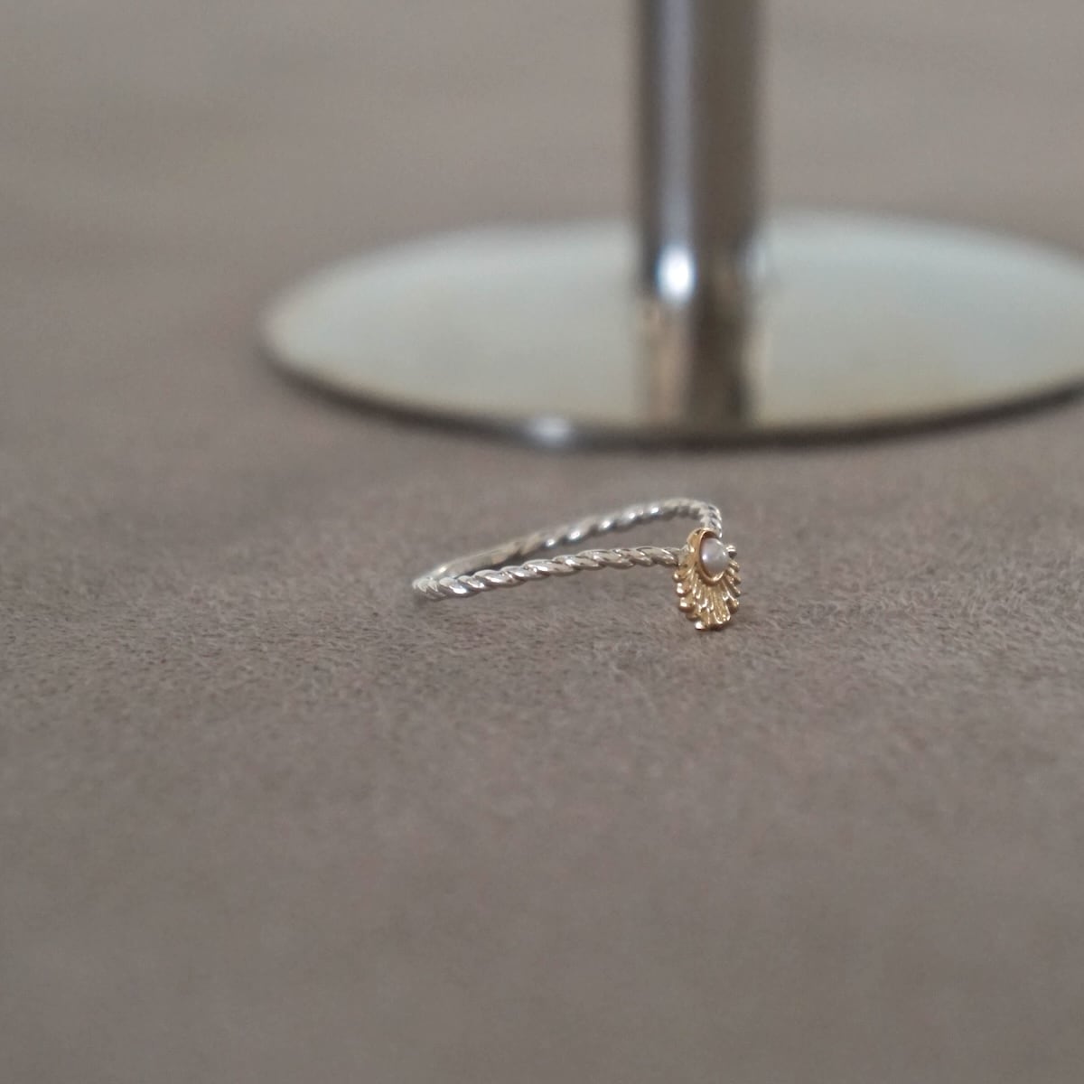 ・お手入れの際、silver部分の黒ずみが出て来た場合はシルバー用の研磨剤のついたクロスを使用して磨くと元の輝きが戻ります。gold部分や石留め部分は研磨剤のついたクロスは使用せず、柔らかい布で軽くお拭きください。