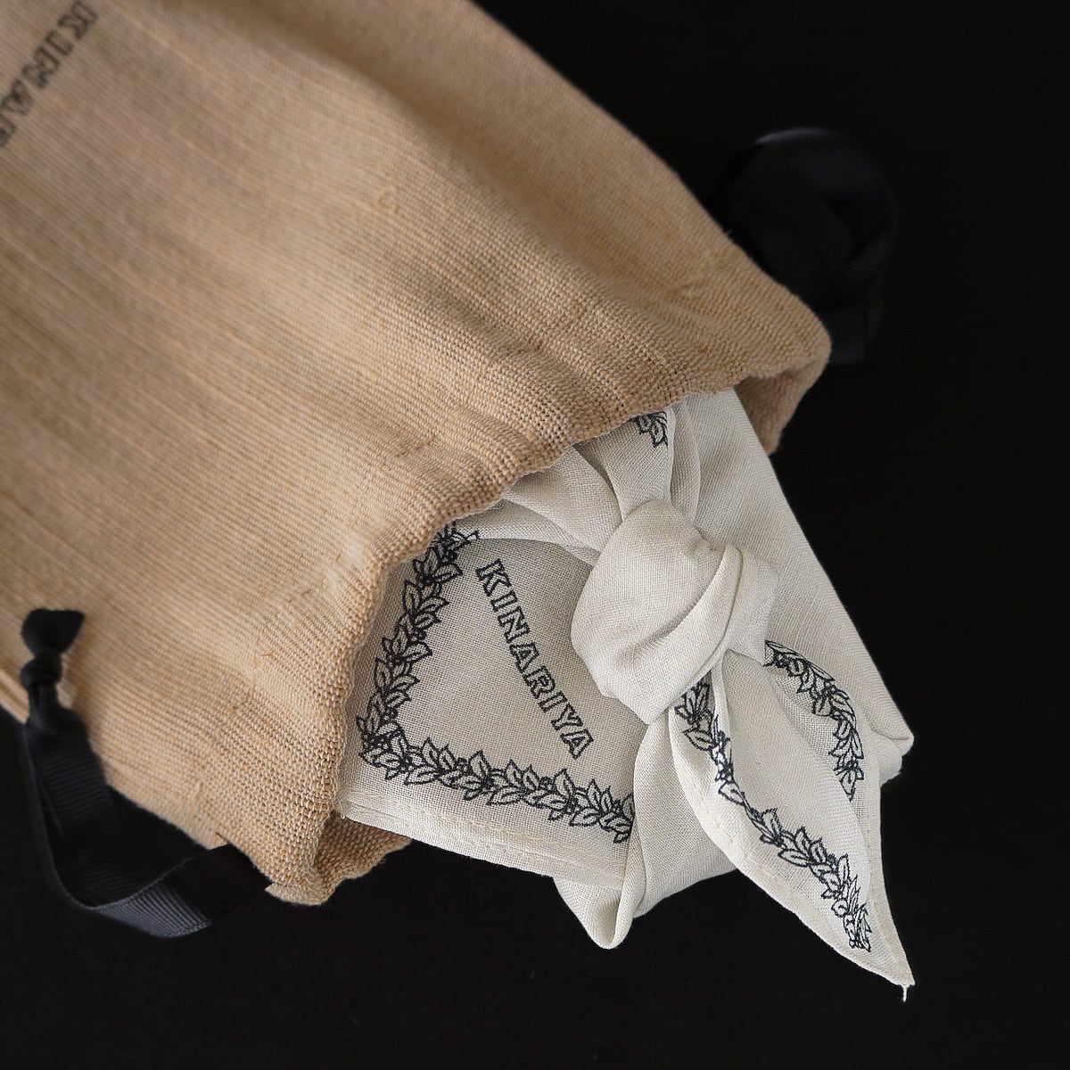 KINARIYAのロゴ入りジュート(麻)製巾着ポーチに入れてお届けいたします。
