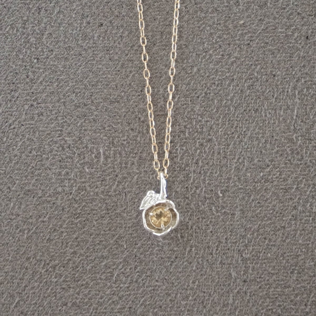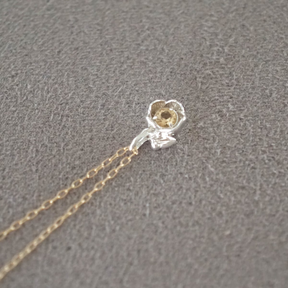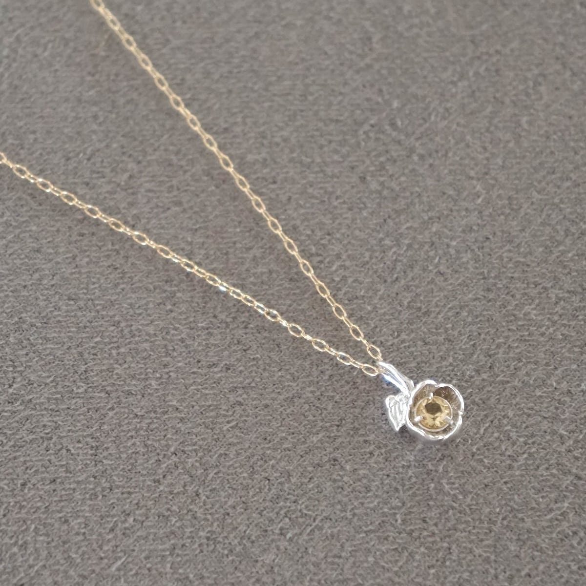フラワーモチーフに小粒のカラーストーンをあしらったネックレス。