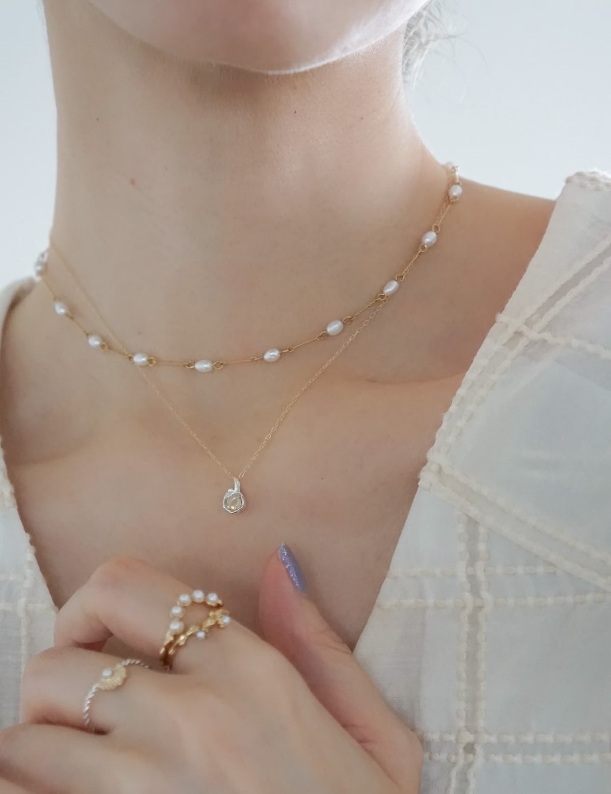 華奢なチェーンを活かした重ね着けコーディネートにもおすすめです。