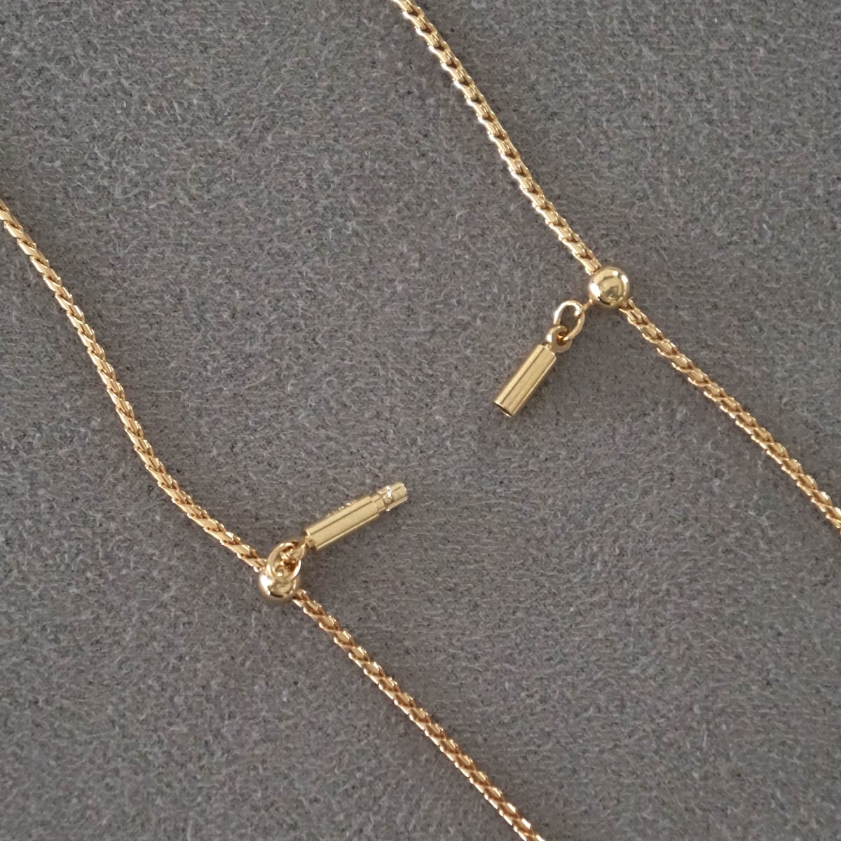 留め具の両サイドのボールをスライドさせることで長さを調節していただけます。