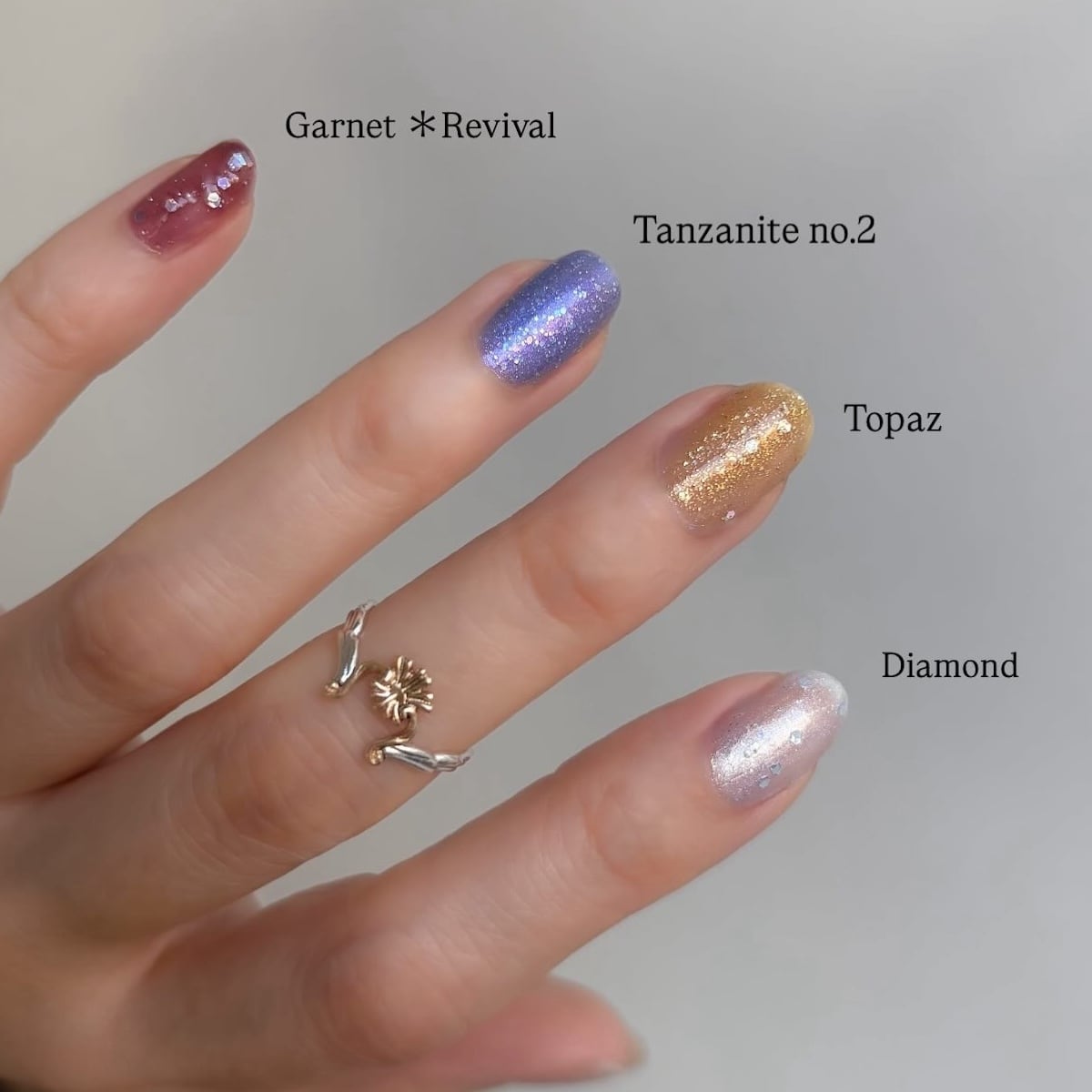 ホログラムカラーをはじめとする様々な色のラメをミックスしたスパイシーなカラー。
