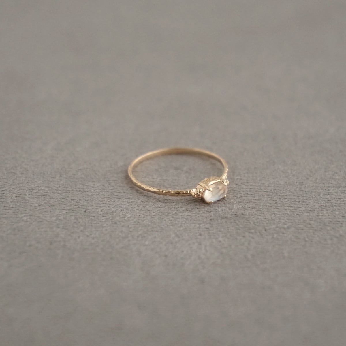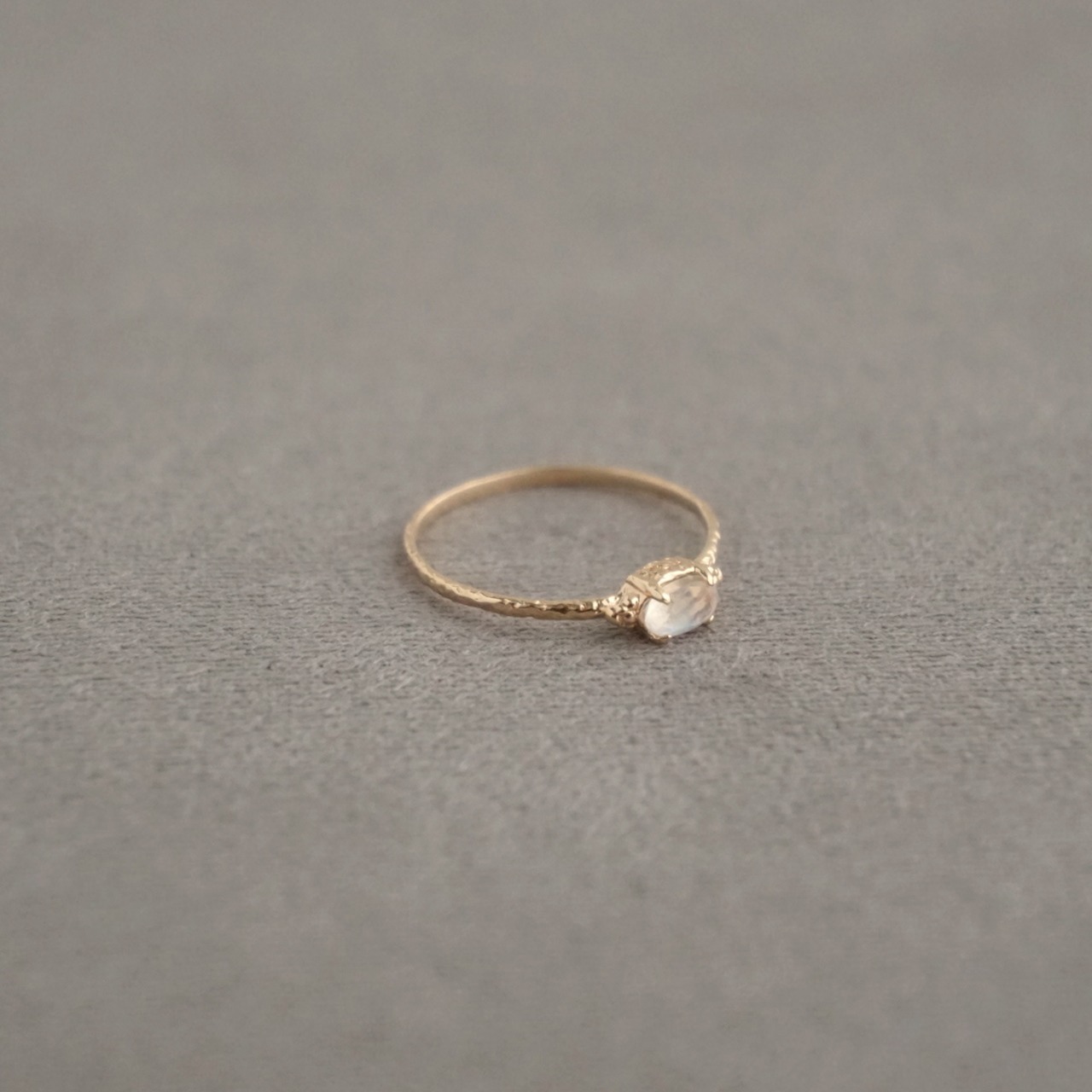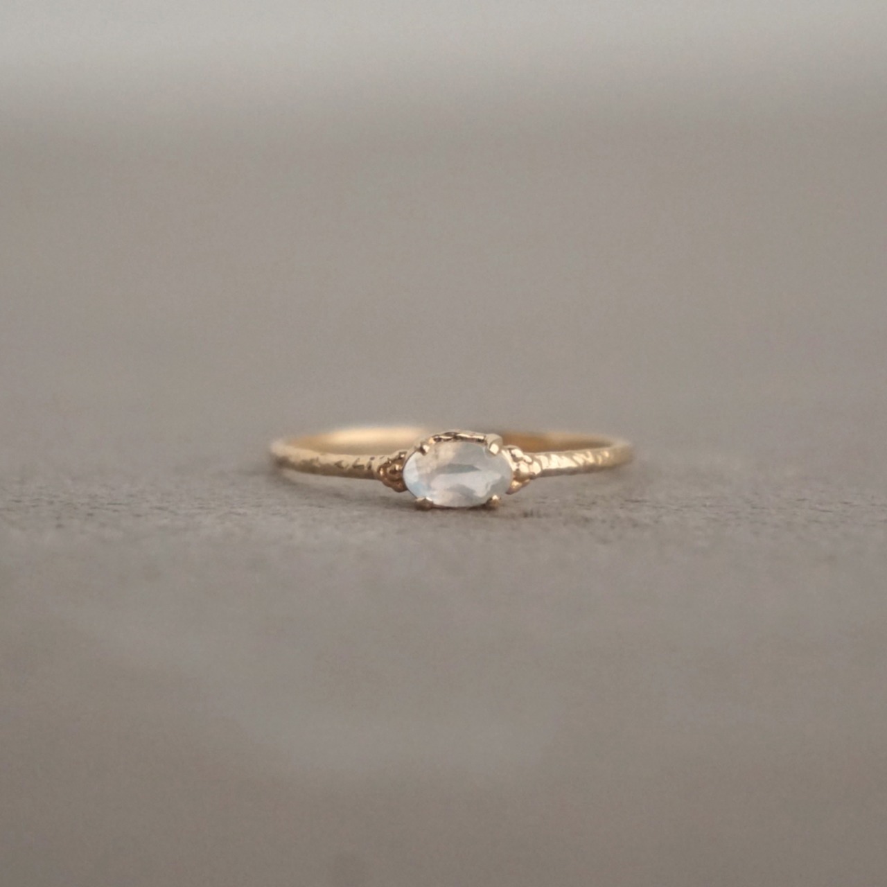 楕円型の小粒なファセットカットの天然石が上品にきらめくリング。