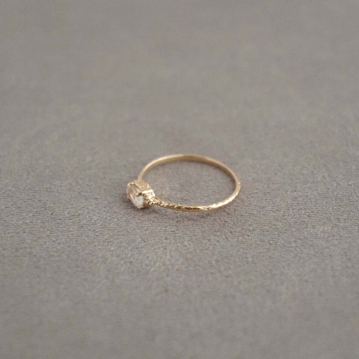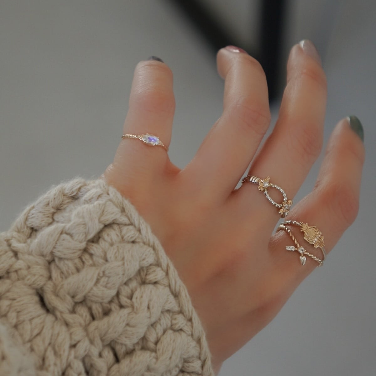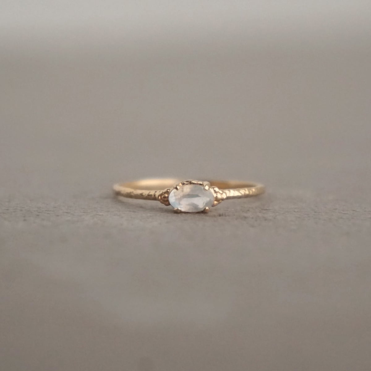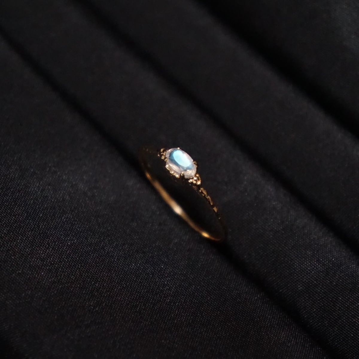 楕円型の小粒なファセットカットの天然石が上品にきらめくリング。