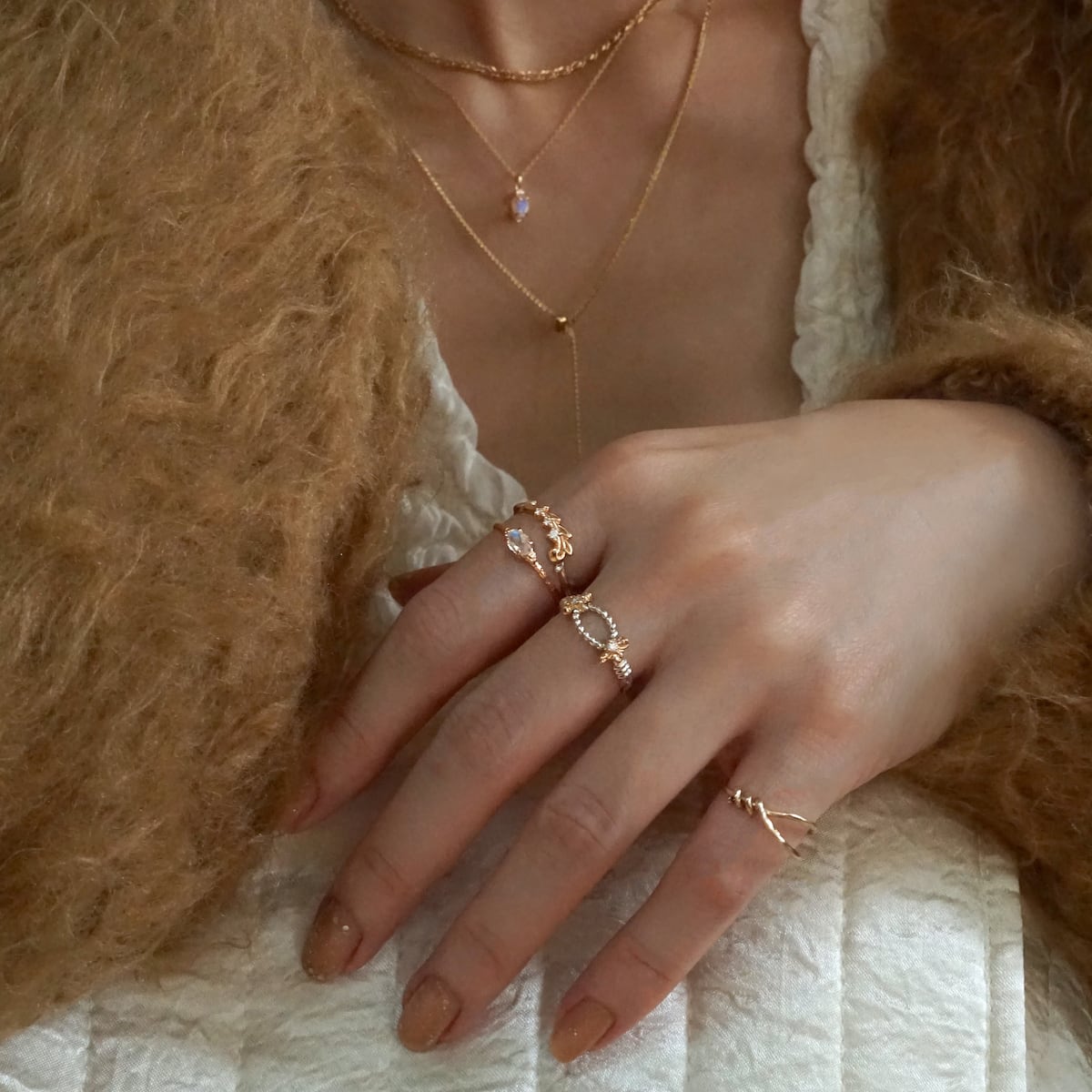 華奢なアームと小粒の天然石を活かした重ねづけもおすすめです。