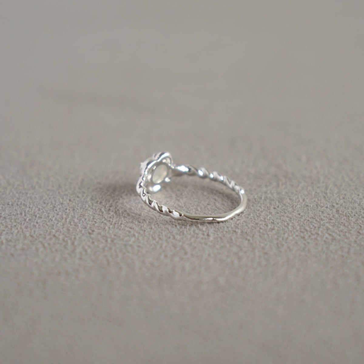 カボションカットの天然石をあしらったフラワーモチーフのsilverリング。