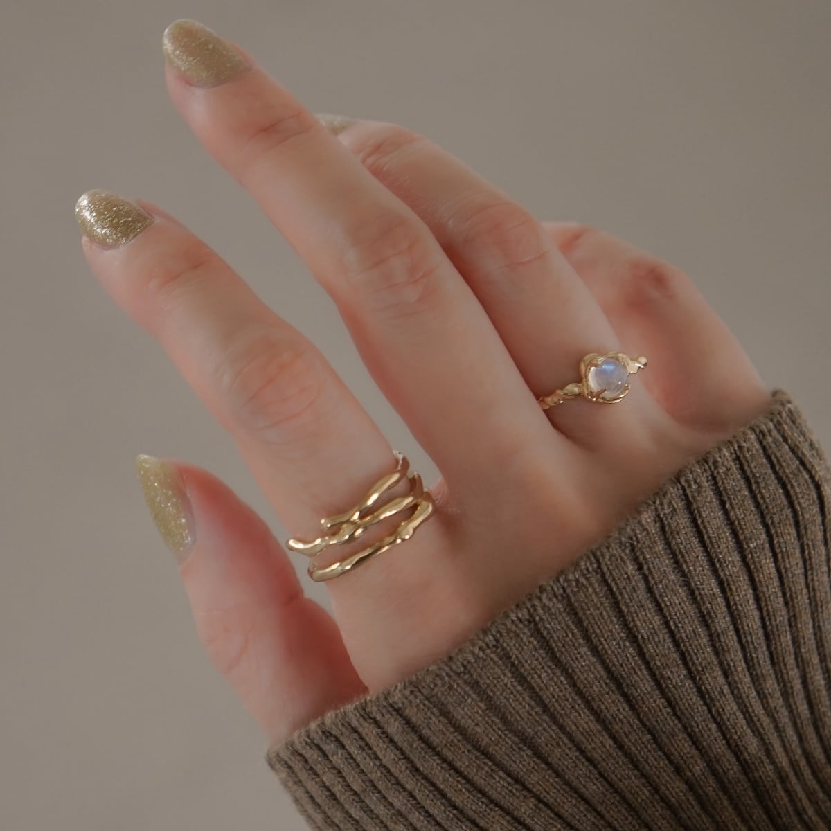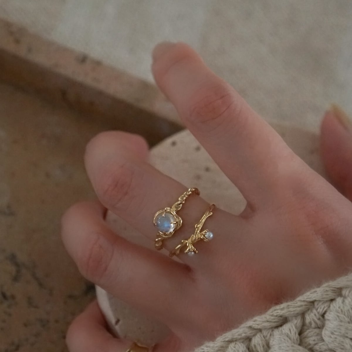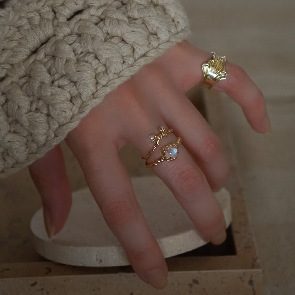<Moonstone / gold>"gem stone" flower cabochon ring | MR-133