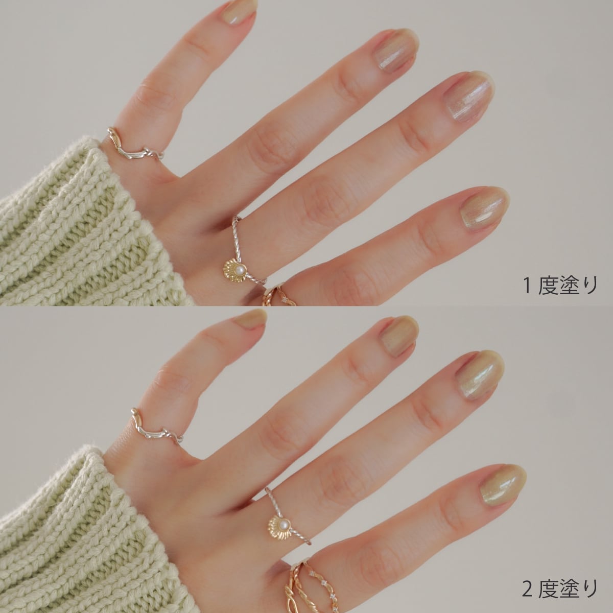 2度塗りで偏光パールが際立つしっかりとした発色に。