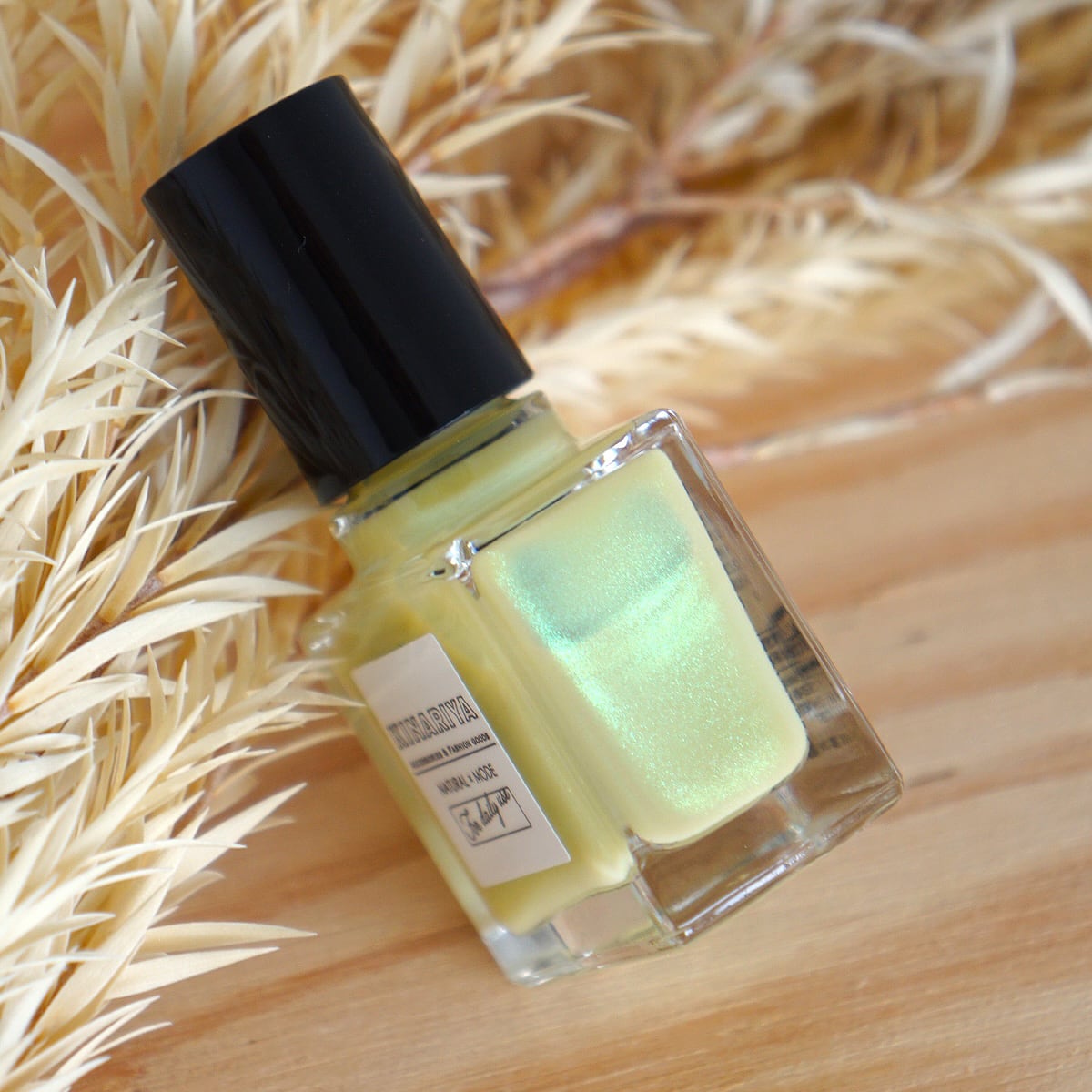 薄づきのレモンイエローにグリーンの偏光パールがふわりと浮かび上がる