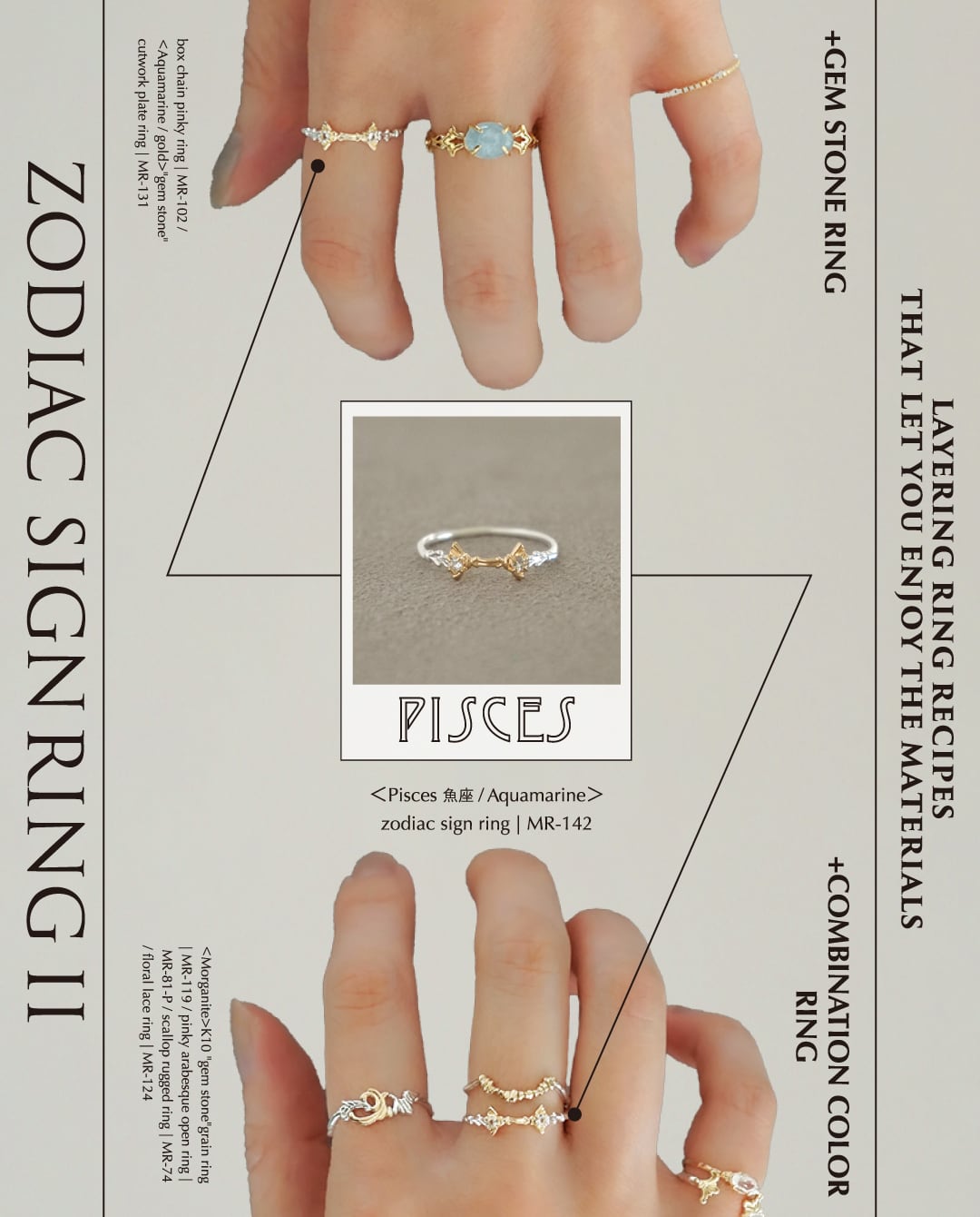 <Pisces 魚座 / Aquamarine>zodiac sign ring | MR-142