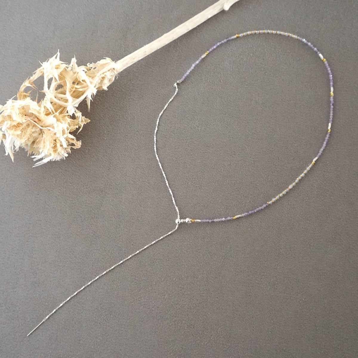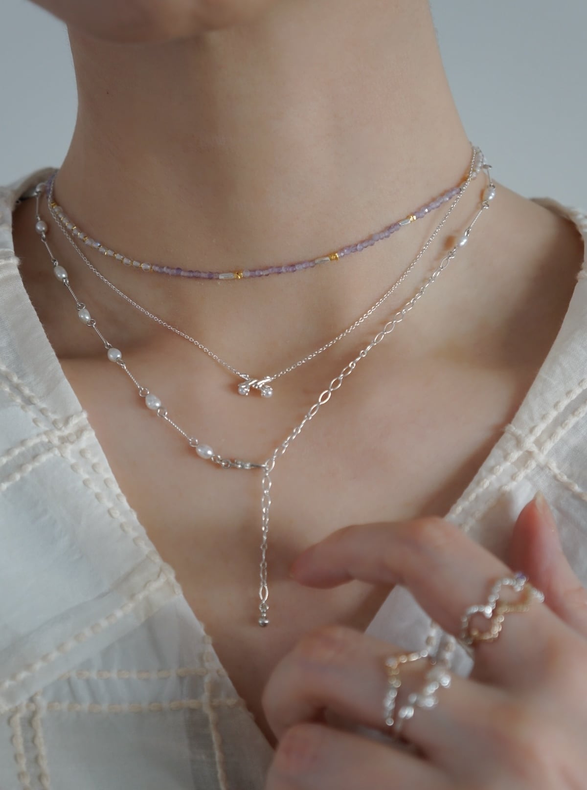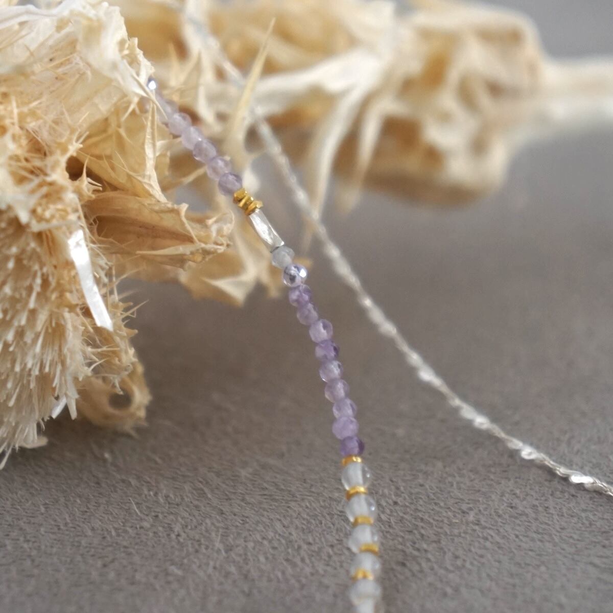 天然石ビーズは小粒のため、ネックレスの重ね着けにもおすすめです。