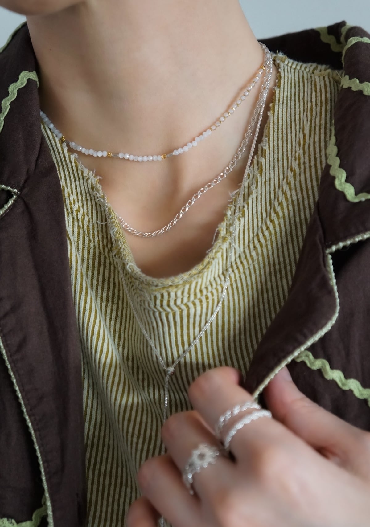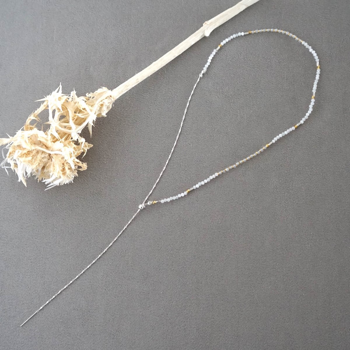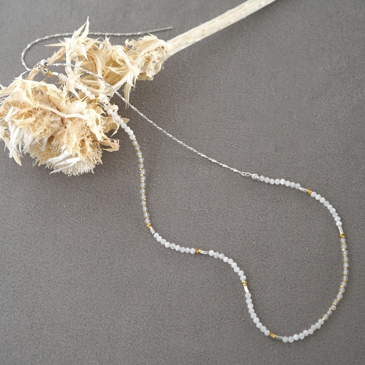 天然石ビーズは小粒のため、ネックレスの重ね着けにもおすすめです。