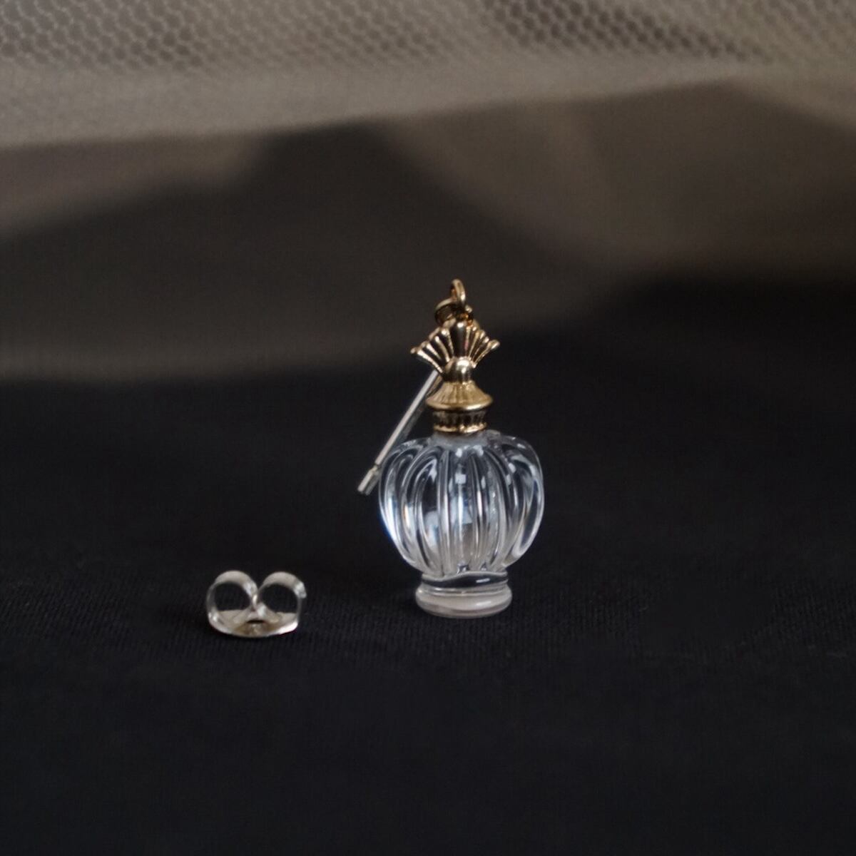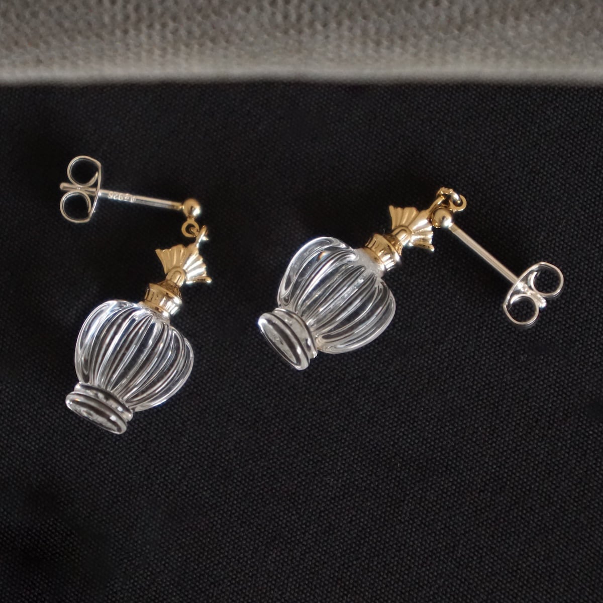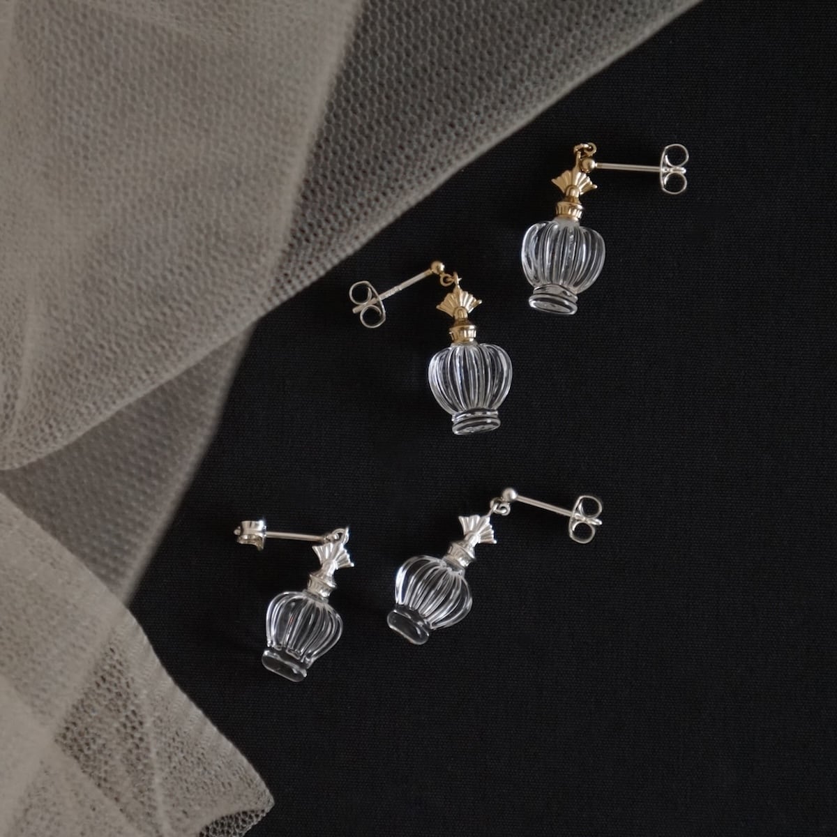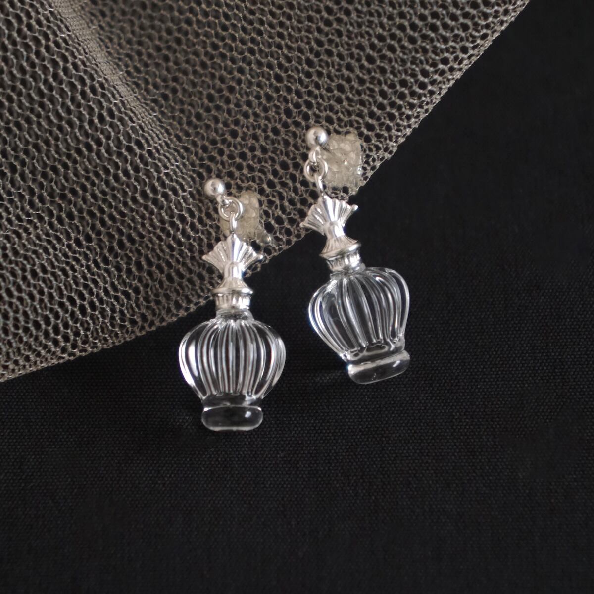 ガラス細工の香水瓶モチーフをピアスに仕立てました。