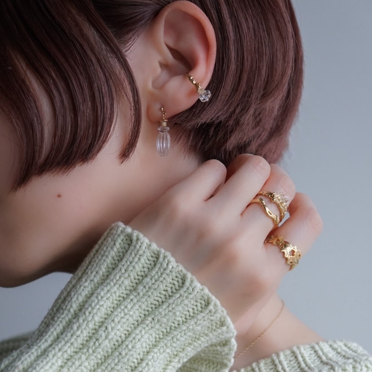 アンティークのパフュームボトルをイメージしたガラスならではのミニチュアジュエリー。