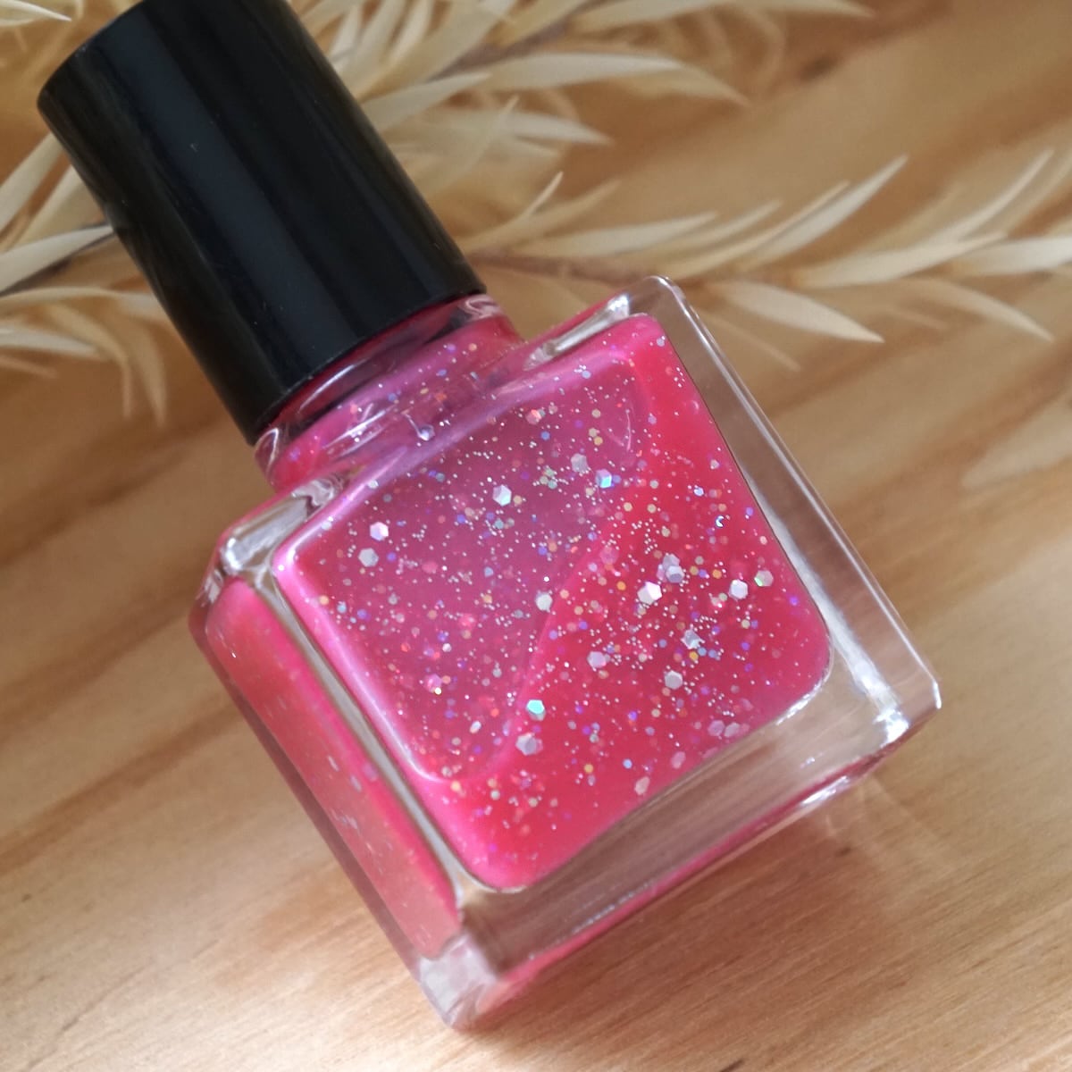 ホログラムラメやレインボーカラーのラメを散りばめた目を惹く華やかなカラー。