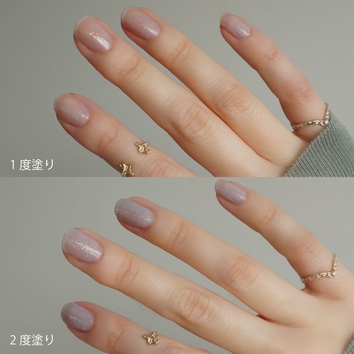 ゴールドの偏光パールとゴールドのラメが輝く優しく穏やかなカラー。