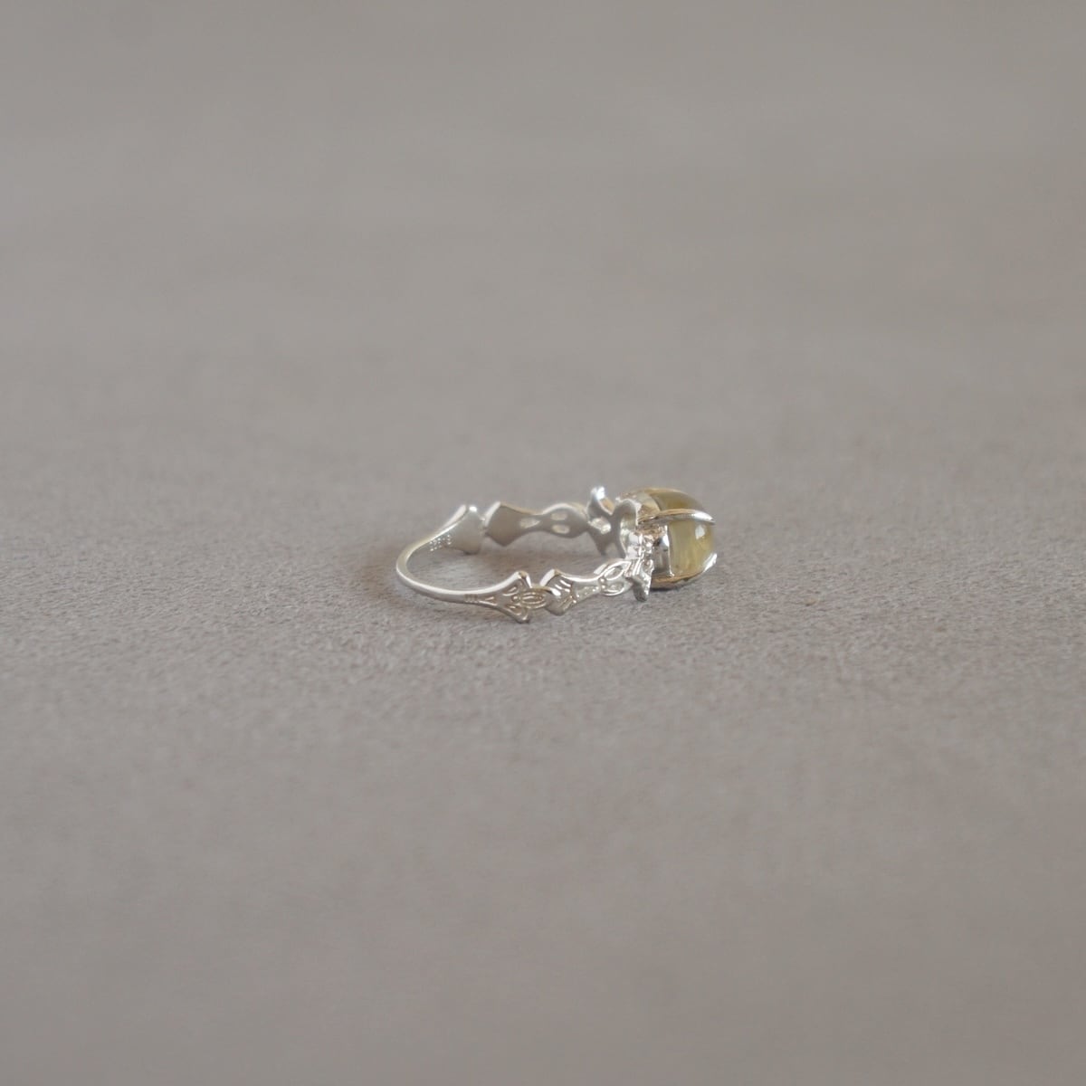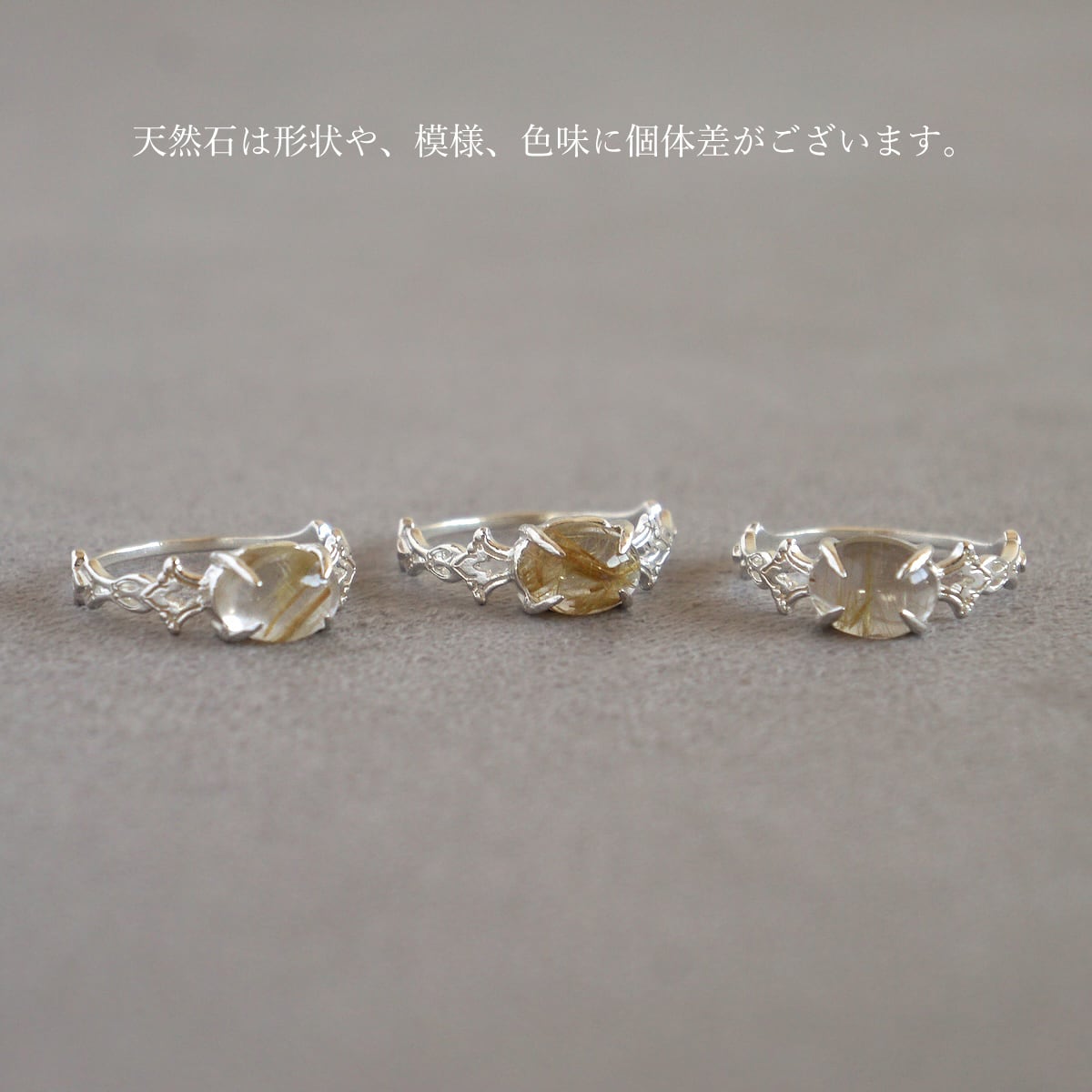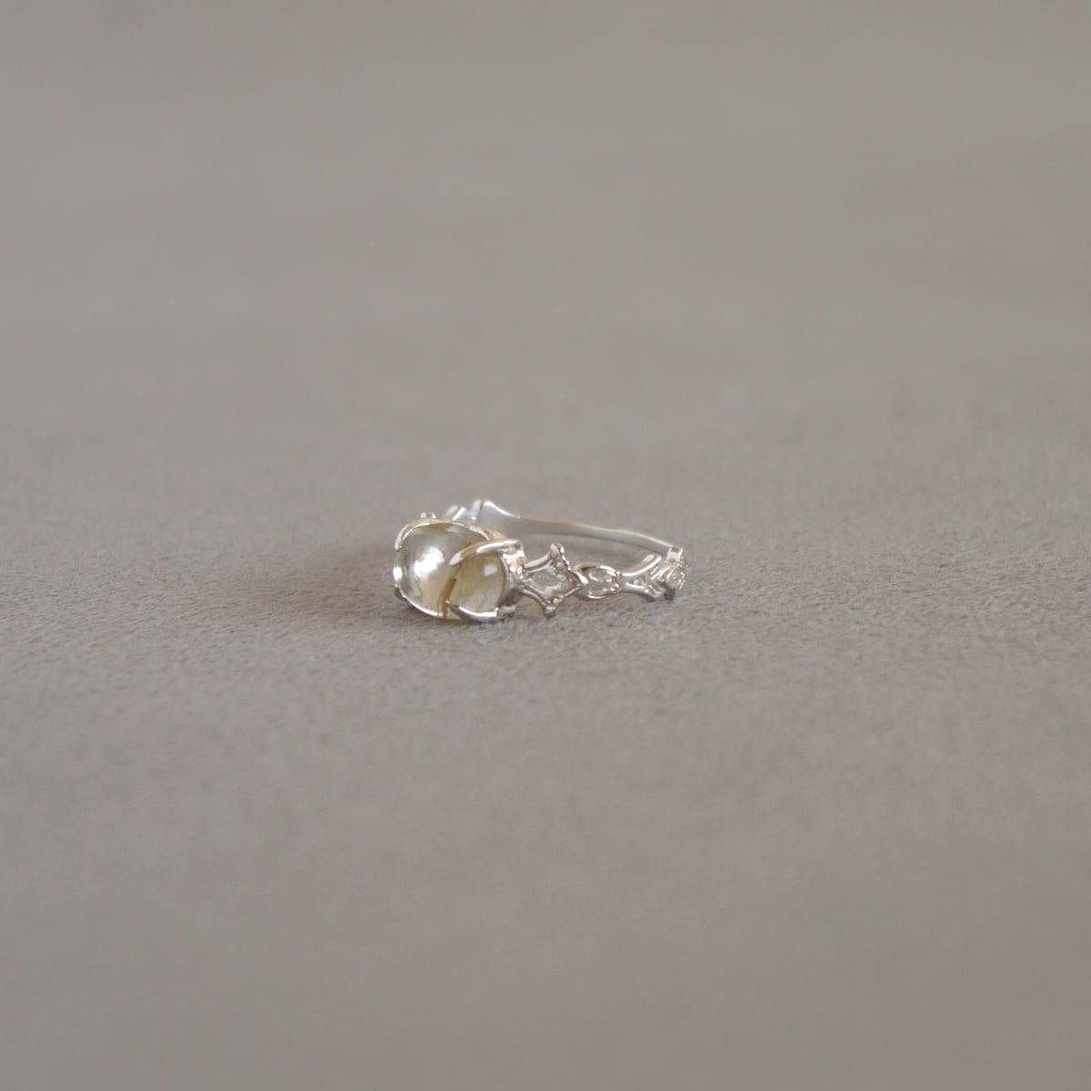<Rutile Quartz / silver>"gem stone" cutwork plate ring | MR-131