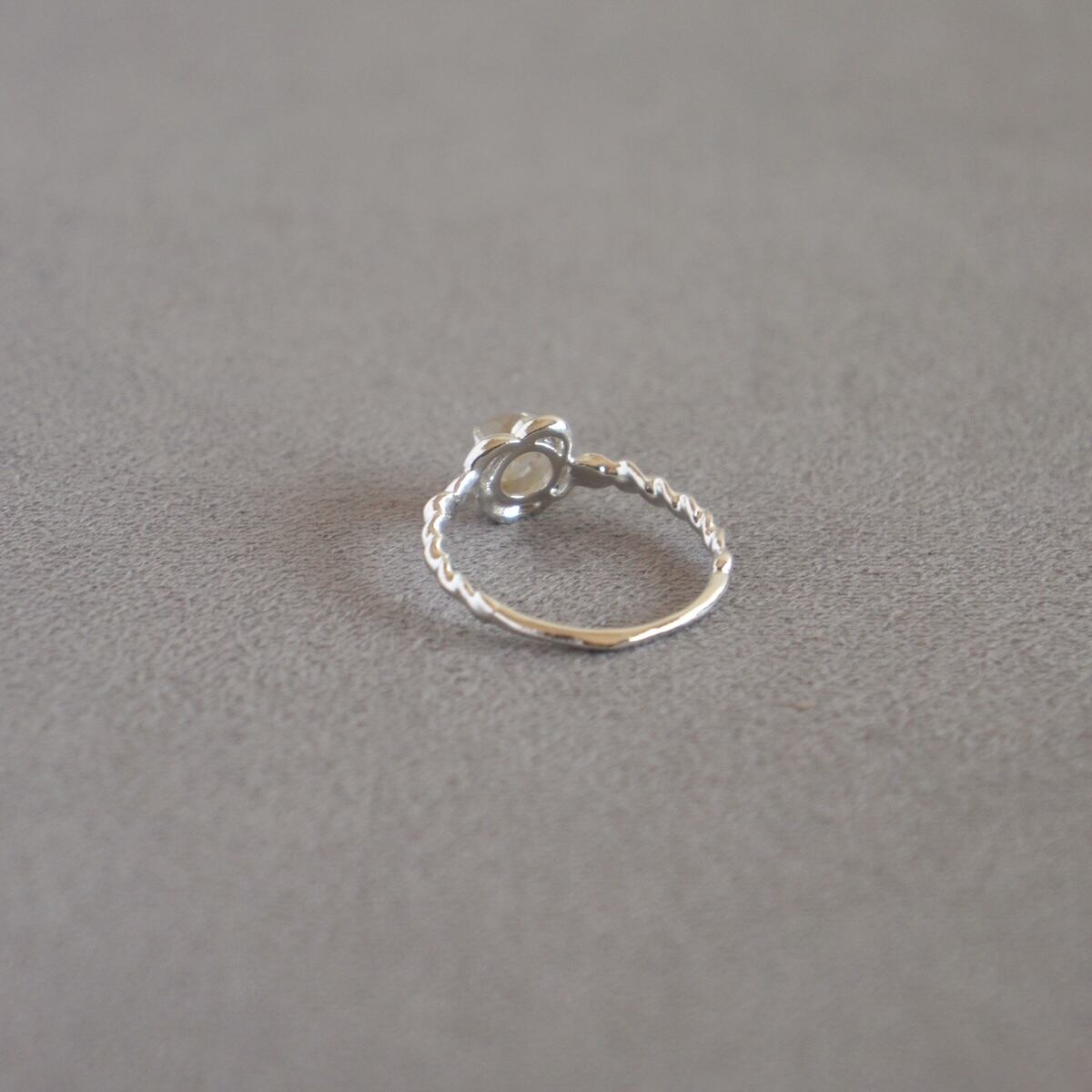 カボションカットの天然石をあしらったフラワーモチーフのsilverリング。