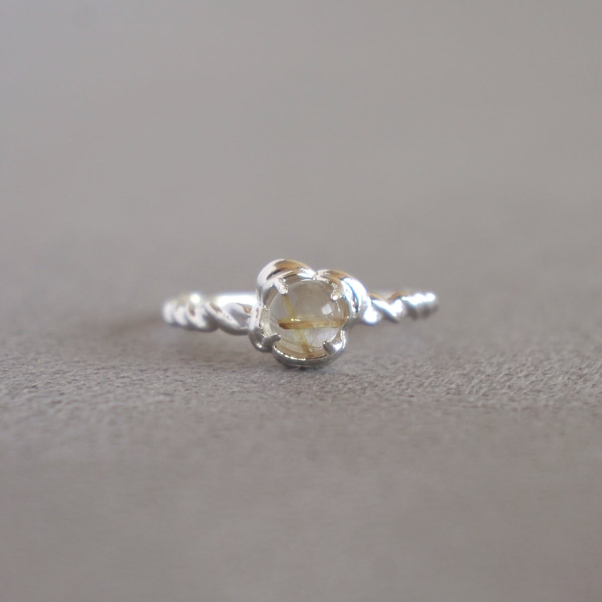 <Rutile Quartz / silver>"gem stone" flower cabochon ring | MR-133