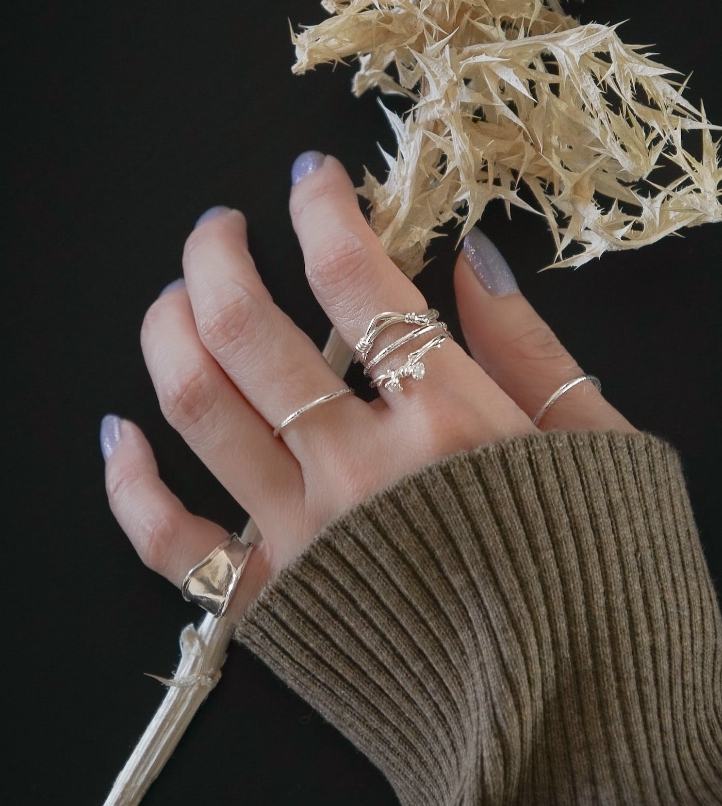 Silver925製の細幅リング3点セットと